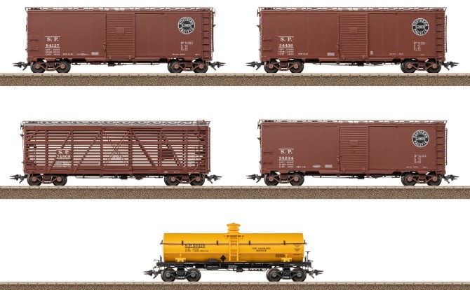 Im Modell gibt es gleich 11 Wagen für Berkshire. Dabei sind je ein 5-Wagen-Set von Märklin und von TRIX in Angebot. Als Abschluss muss das obligatorische Caboose an den Zug. Alle Wagen sind mit vielen vielen separat angesetzten Teilen sehr fein detailliert.