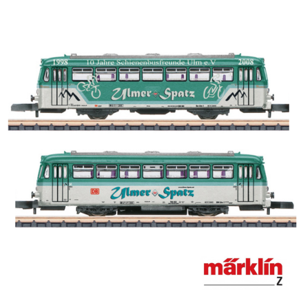 Die modernisierten Fahrzeuge der Baureihe VT 98 liefen zuletzt unter anderem als BR 798 / 998 in "Produktfarben" als "Ulmer Spatz". Das Modell zeigt den Betriebszustand bei der DB AG um 2008.